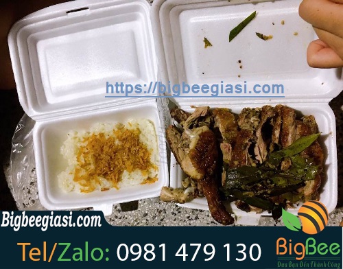 Hộp xốp đựng nửa con vịt quay của Thu Hồng
