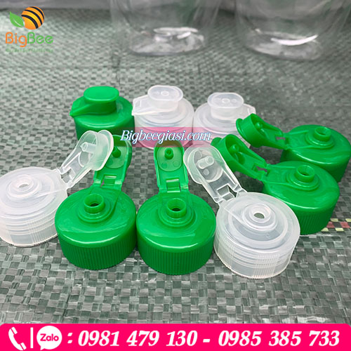 Nắp chai: Nắp bật bằng và nắp bật có vòi ngắn
