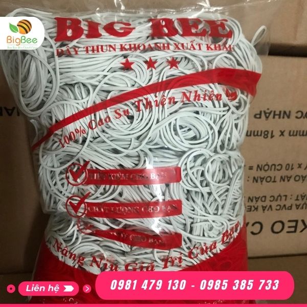 Dây thun khoanh BigBee được sản xuất từ 100% cao su tự nhiên, nổi bật với độ đàn hồi vượt trội và khả năng co giãn linh hoạt. Sản phẩm được cắt theo dạng khoanh tròn nhiều kích thước, nhiều màu sắc, phù hợp từ nhu cầu gia đình nhỏ lẻ đến doanh nghiệp sản xuất, đóng gói lớn.