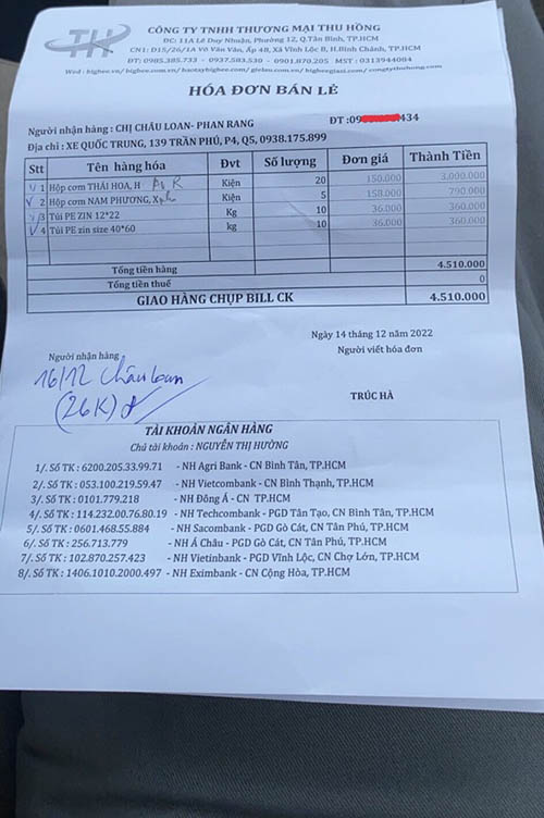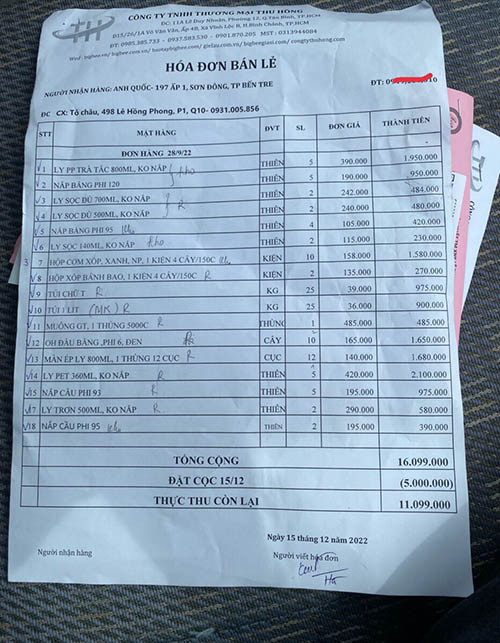 Hóa đơn bán hàng hộp xốp được nhân viên chụp lại
