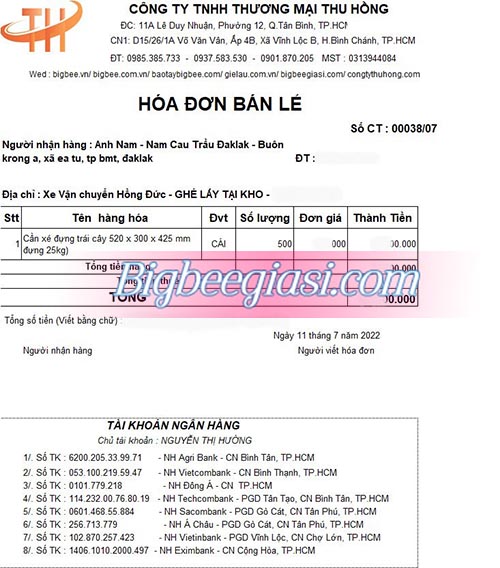 Anh Nam ở Buôn Ma Thuột ghé kho Thu Hồng lấy 500 cái cần xé nhựa (kích thước 520x 300x425mm) loại đựng được 25kg. Hy vọng sẽ được làm việc tiếp với Anh Nam trong thời gian tới. Để cảm ơn tất cả khách hàng, chúng tôi sẽ không ngừng phát triển, nâng cao chất lượng dịch vụ để có thể phục vụ Quý khách hàng tốt nhất.