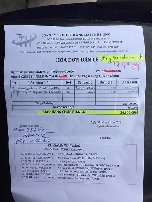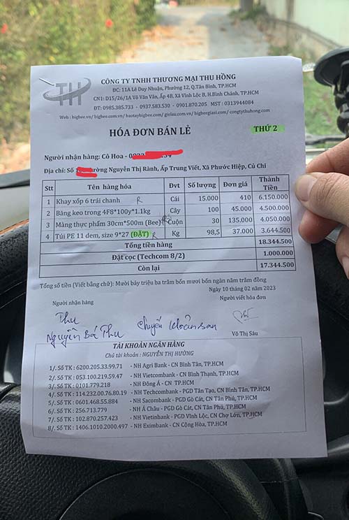 Sau đây là những hoạt động giao hàng ngay 15/2/2023 tại xưởng Thu Hồng.