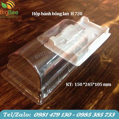 - Hộp đựng bánh bông lan H720 hình chữ nhật với kích thước lớn và giá thành rẻ nên là loại bao bì được ưa chuộng để đựng, bảo quản các loại bánh bông lan cuộn.