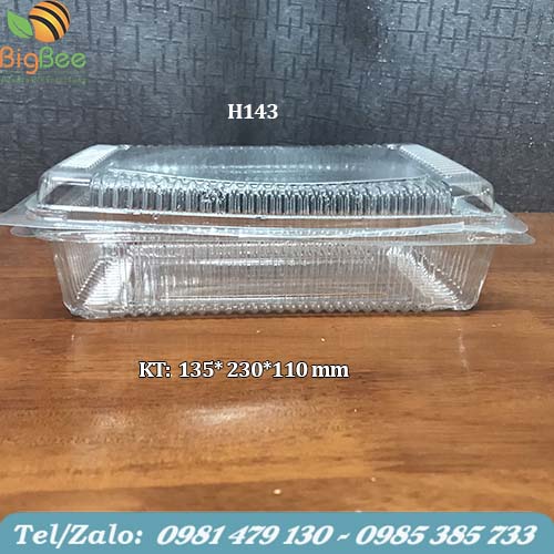- Hộp nhựa trong nắp gập H143 là sản phẩm hộp nhựa có tính ứng dụng cao. Có thể dùng để đựng nhiều loại thực phẩm từ các loại bánh ngọt đến các món salad, rau mầm,....