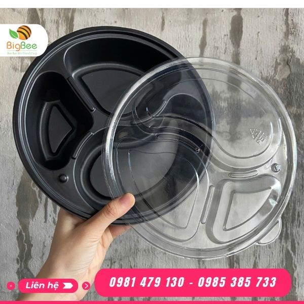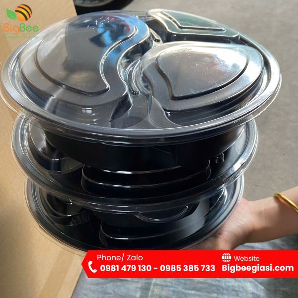 Hộp nhựa đế đen tròn 3 ngăn tiện lợi, chất lượng tại Bao Bì Thu Hồng