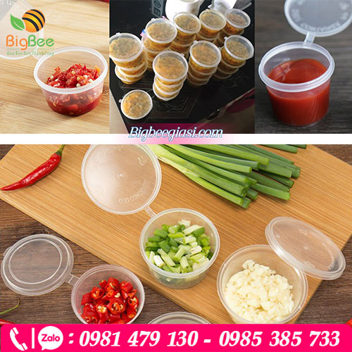 Công dụng: Thường dùng đựng nước chấm, nước sốt, gia vị, tương ớt, tương cà, toping kèm theo món ăn Khi kinh doanh đồ ăn online mang đi.