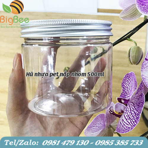 - Hũ nhựa PET nắp nhôm 500ml sử dụng nhựa pet nguyên sinh, chưa qua tái chế & được sản xuất riêng cho dùng để bảo quản thực phẩm.