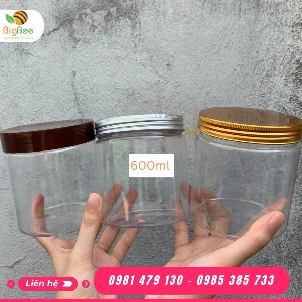- Hũ nhựa PET nắp nhôm 600ml với thiết kế đơn giản nhưng tiện dụng. Khả năng bảo quản tốt nên chúng được sử dụng ngày càng nhiều trong sản xuất thực phẩm nói chung và các loại đồ ăn chế biến nói riêng.