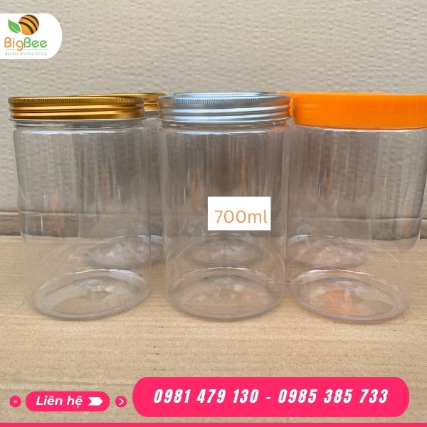 Hũ nhựa PET nắp nhôm 700ml với thiết kế thông minh, nhỏ gọn, hiện đại. Là sản phẩm bao bì được lựa chọn và yêu thích hiện nay. Sử dụng Hũ nhựa PET nắp nhôm 700ml để đựng thực phẩm không chỉ giúp bảo quản tốt hơn, mà còn giúp thực phâm bên trong trở nên ngon mắt và hợp vệ sinh hơn.