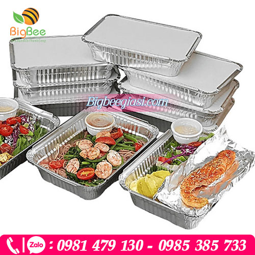 Khay giấy bạc nướng chữ nhật có nắp nhôm đậy