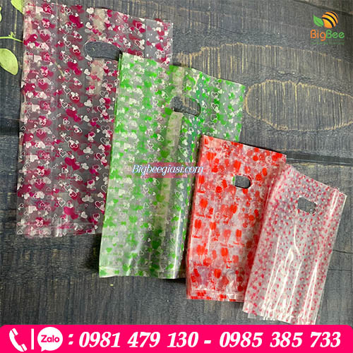 Túi hột xoài in sẵn hình, sản phẩm được sản xuất mẫu in sẵn theo từng lô hàng, có thể là hình gấu, bông, trái tim, ngôi sao nhiều màu, chữ chúc mừng năm mới,... Tạo điểm nhấn nổi bật và sang trọng khi đựng hàng bán mang về cho khách.