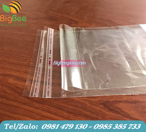 - Túi opp dán miệng: Loại túi này có một bên được cắt cao hơn so với bên còn lại và được gắn 1 dải keo dài nằm ngang song song với miệng túi. Lớp keo dính giúp cho sản phẩm đựng bên trong sẽ được giữ lại an toàn và không bị rơi ra ngoài.