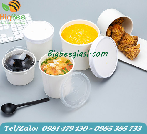 Công dụng: bát giấy dùng để đựng thực phẩm( đồ ăn take away) như: bún, phở, cháo, soup, kem, chè, salad, cơm văn phòng… rất tiện dụng và an toàn.