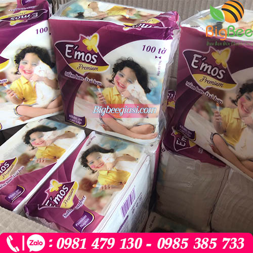 Bỏ sỉ khăn ăn E’mos 100 tờ/gói, 30 gói/thùng giá rẻ, chất lượng