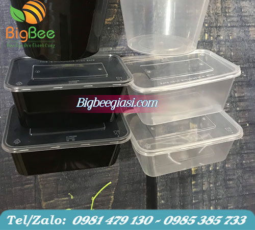 Hộp nhựa màu đen 360ml, 500ml, 750ml, 1000ml.