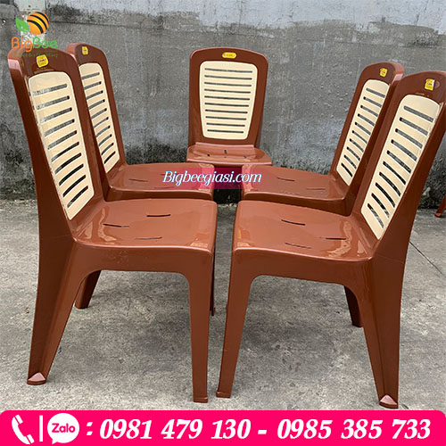 Ghế nhựa tựa lưng đại màu nâu tao nhã