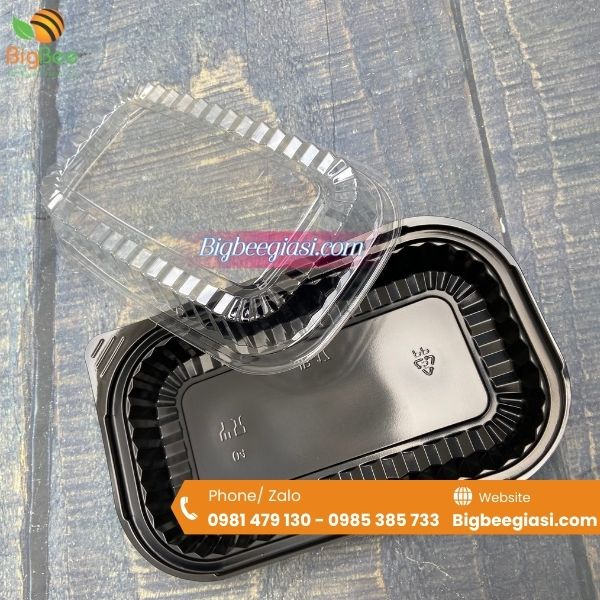 Khay nhựa đế đen nắp trong HT17 với thiết kế sang trọng là sự lựa chọn hàng đầu của các cửa hàng kinh doanh thực phẩm, không chỉ để thu hút khách hàng mà còn đảm bảo an toàn vệ sinh thực phẩm đến tay người tiêu dùng.