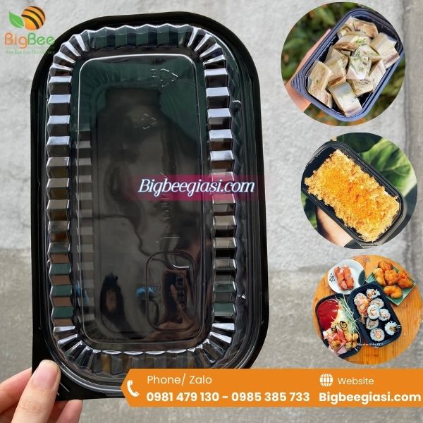Hộp nhựa đế đen nắp trong HT17 đựng thức ăn đang rất được ưa chuộng để đựng cơm, bánh ngọt, sushi, mì ý , salad, trái cây cắt sẵn.... Sản phẩm này được các quán ăn, nhà hàng và siêu thị tin dùng nhờ thiết kế tinh tế với đế màu đen sang trọng cùng nắp trong suốt có độ bóng cao, không chỉ bảo vệ thực phẩm mà còn nâng cao giá trị thẩm mỹ, thu hút ánh nhìn và kích thích sự hứng thú của khách hàng.