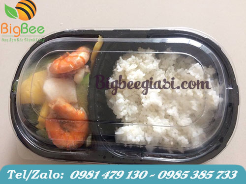 Công dụng: Hộp nhựa đen đựng cơm 2 ngăn có nắp trong chuyên được sử dựng để đựng các món ăn như cơm phần, shushi, mì xào bò, hủ tiếu xào, trái cây cắt sẵn, các món ăn vặt khi có nhu cầu ship hàng đi xa. Ngoài ra hộp đựng cơm 2 ngăn thường được sử dụng để làm khay đựng đồ ăn tại các quầy kinh doanh thức ăn nhanh (vd: siêu thị, nhà hàng)…để tối ưu hóa chi chi phí vì giá thành rẻ mà vẫn đảm bảo an toàn.