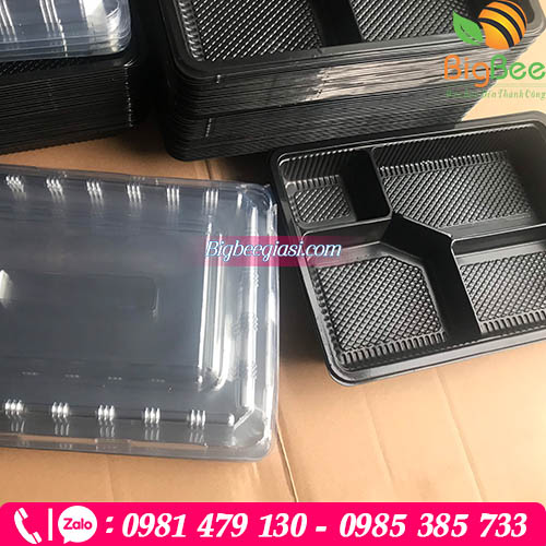 Nói chung khi kinh doanh cơm văn phòng, thực phẩm mang đi, sản phẩm hộp nhựa đen nắp trong 4 ngăn giá rẻ là sản phẩm tối ưu cho công việc của bạn.