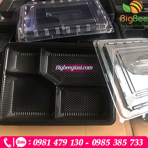 Bán sỉ hộp nhựa đen nắp trong 4 ngăn đựng cơm, đựng đồ ăn online.
