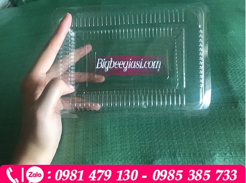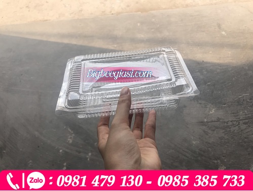- Là loại hộp nhựa trong dùng được một lần để đựng thực phẩm như bánh su kem, bánh bông lan, rau mầm,..Với kiểu dáng mỏng hình chữ nhật có nắp đậy tiện lợi, dễ dàng dùng ghim để cố định sản phẩm.