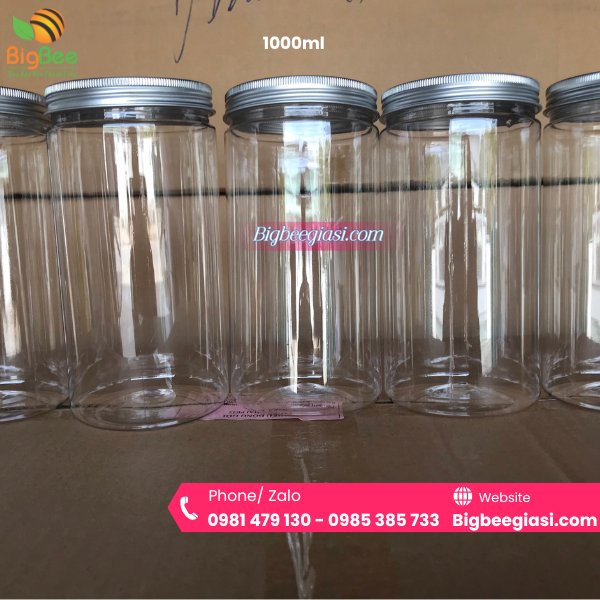 Hũ nhựa pet nắp nhôm 1000ml: Kích thước 8.8cm, Cao 16.5cm