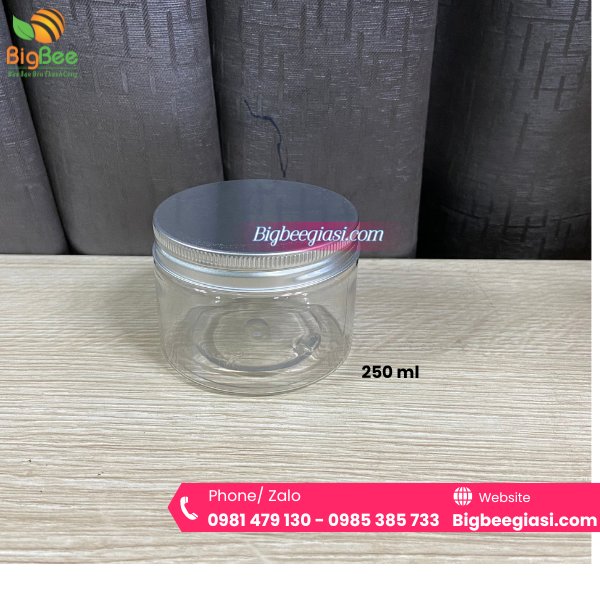 Hũ nhựa pet nắp nhôm 250ml: Kích thước Ø8.5 cm, Cao: 6.5 cm