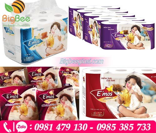 + Giấy vệ sinh E’mos cuộn được thiết kế dạng cuộn tròn gồm nhiều lớp có đặc tính mềm dễ tan trong nước nên sử dụng chủ yếu trong nhà vệ sinh. Loại giấy này hiện được sản xuất với với 3 loại: