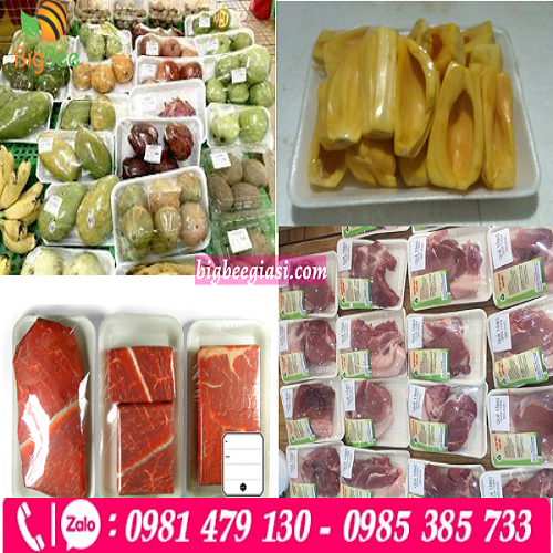 Khay xốp đựng hoa quả, thịt cá tại siêu thị