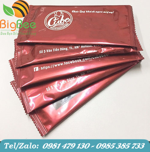 Bên cạnh đó, khâu in ấn khăn ướt sẽ tăng tính tin tưởng hơn vì thông tin về địa chỉ, tên quán ăn/nhà hàng, slogan, thương hiệu, các dịch vụ mà bạn cung cấp cho khách hàng được in rõ trên bao bì khăn ướt.