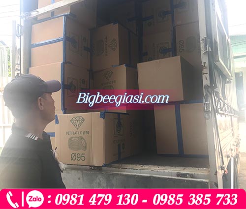 Xe hàng ly nhựa đang được vận chuyển cho khách tại Thu Hồng.