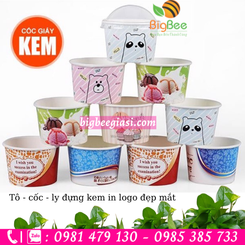 Tô giấy, ly giấy đựng kem in logo giá rẻ tại TPHCM