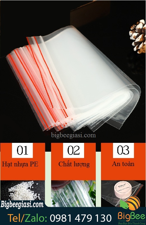 Bigbeegiasi.com chuyên túi Zipper thực phẩm trong suốt full size theo yêu cầu