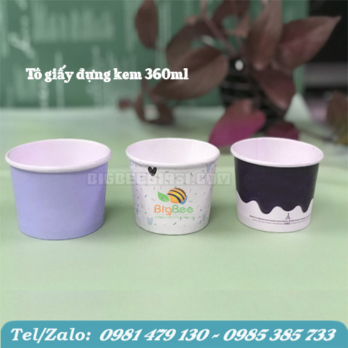 - Tô giấy 360ml (12oz) - Tô đựng kem kèm nắp là sản phẩm có kích thước nhỏ nhất trong dòng sản phẩm tô giấy của thương hiệu Bigbee. Nên chúng chủ yếu chỉ phù hợp với việc đựng kem hoặc một số món ăn vặt, tráng miêng,..
